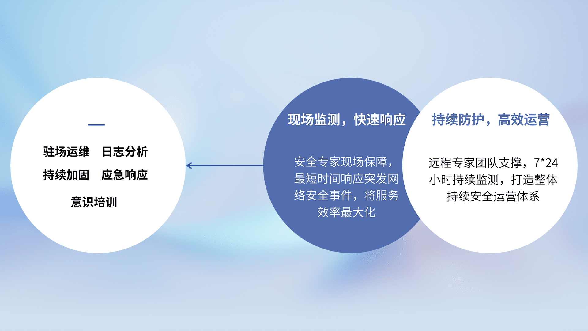 针对客户行业特性,,,提供专属的一站式安全管理服务,,,,帮助客户全面感知网络空间威胁,,,通过安全专家的线上、、、线下防护支持,,实现风险闭环,,将安全保障常态化,,,为客户打造常态化安全运维运营服务。。。